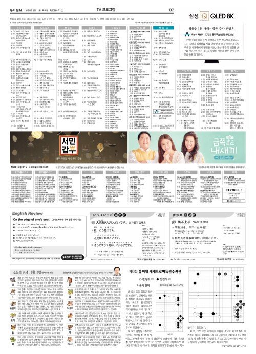 B섹션 7면 TV프로그램/운세/외국어/바둑