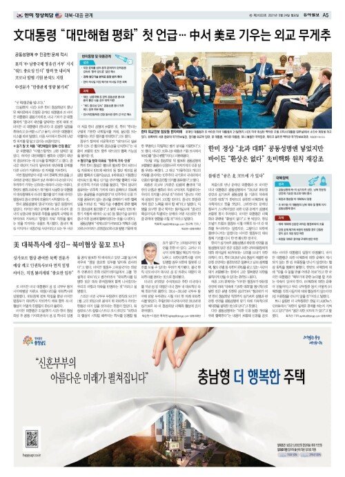 文대통령 “대만해협 평화” 첫 언급… 中서 美로 기우는 외교 무게추