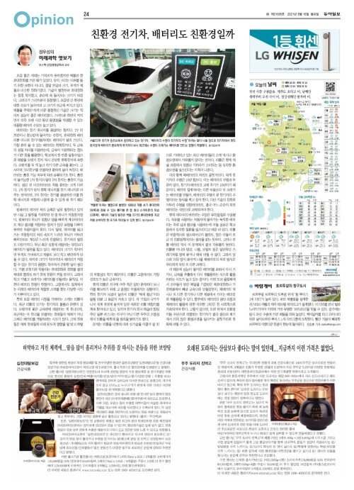 친환경 전기차, 배터리도 친환경일까[정우성의 미래과학 엿보기]