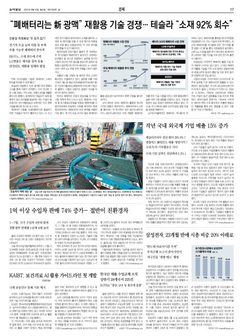 “폐배터리는 新 광맥” 재활용 기술 경쟁… 테슬라 “소재 92% 회수”