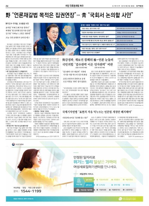野 “언론재갈법 목적은 집권연장”… 靑 “국회서 논의할 사안”