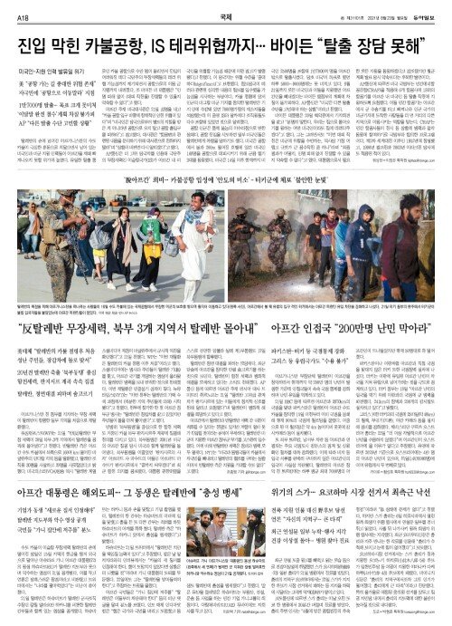 [사설]“주한미군 아프간 피란민 수용”… 한미, 인도적 차원서 협의를