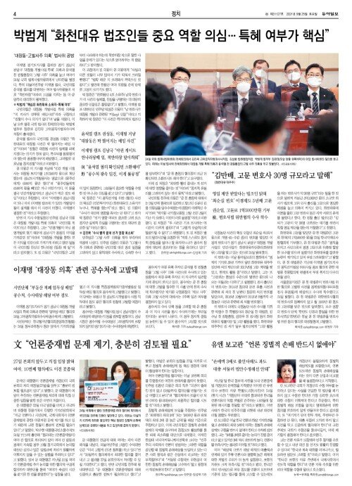文 “언론중재법 문제 제기, 충분히 검토될 필요”