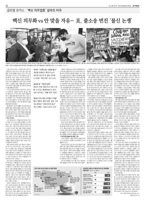 백신 의무화 vs 안 맞을 자유… 美, 줄소송 번진 ‘불신 논쟁’[글로벌 포커스]