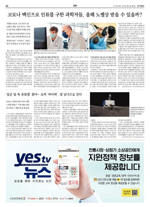 코로나 백신으로 인류를 구한 과학자들, 올해 노벨상 받을 수 있을까?