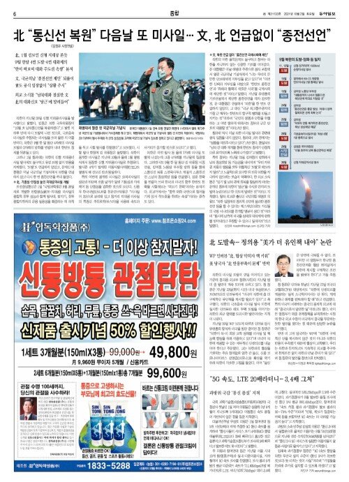 北 “통신선 복원” 다음날 또 미사일… 文, 北 언급없이 “종전선언”