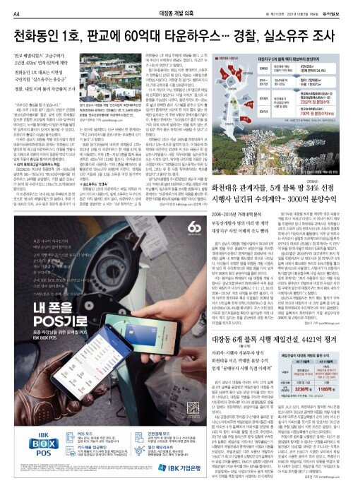 화천대유 관계자들, 5개 블록 땅 34% 선점, 시행사 넘긴뒤 수의계약… 3000억 분양수익