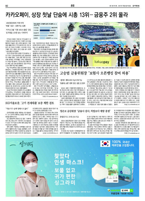 카카오페이, 상장 첫날 단숨에 시총 13위… 금융주 2위 올라