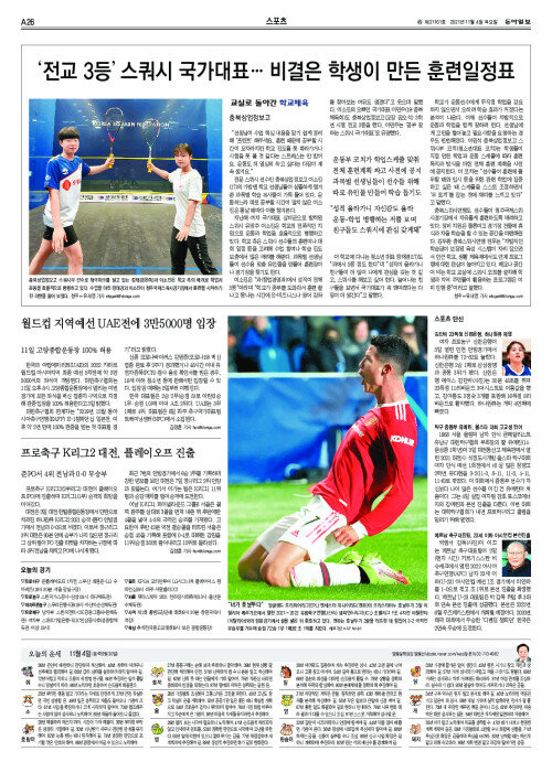 ‘전교 3등’ 스쿼시 국가대표… 비결은 학생이 만든 훈련일정표