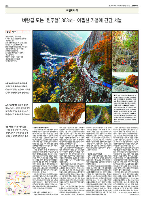 벼랑길 도는 ‘원주율’ 363m… 아찔한 가을에 간담 서늘