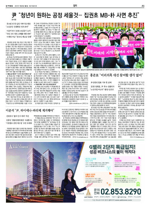 尹 “청년이 원하는 공정 세울것… 집권초 MB-朴 사면 추진”