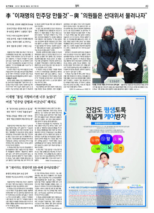 李 “이재명의 민주당 만들것”… 與 “의원들은 선대위서 물러나자”