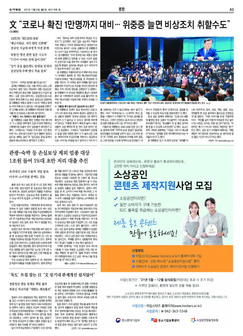 文 “코로나 확진 1만명까지 대비… 위중증 늘면 비상조치 취할수도”