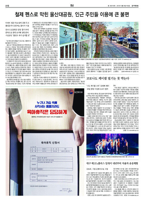 철제 펜스로 막힌 울산대공원, 인근 주민들 이용에 큰 불편