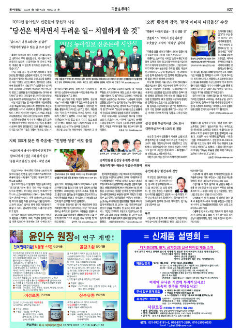 2022년 동아일보 신춘문예 당선자 시상 “당선은 벅차면서 두려운 일… 치열하게 쓸 것”