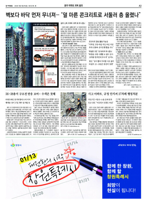 벽보다 바닥 먼저 무너져… “덜 마른 콘크리트로 서둘러 층 올렸나”