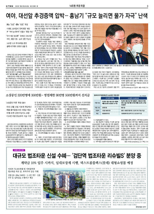 여야, 대선앞 추경증액 압박… 홍남기 “규모 늘리면 물가 자극” 난색