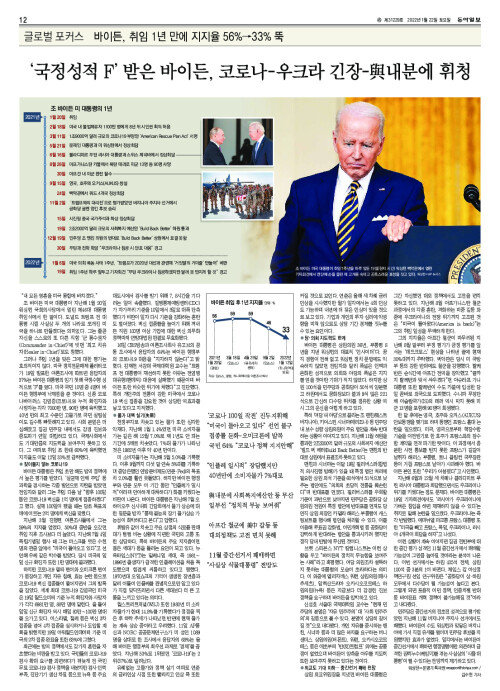 ‘국정성적 F’ 받은 바이든, 코로나-우크라 긴장-與내분에 휘청