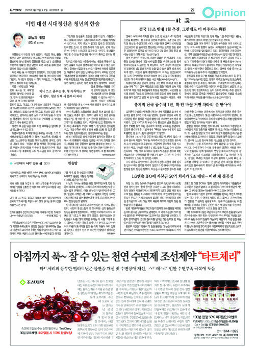 [오늘과 내일/길진균]이번 대선 시대정신은 청년의 한숨
