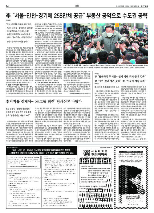李 “서울-인천-경기에 258만채 공급” 부동산 공약으로 수도권 공략