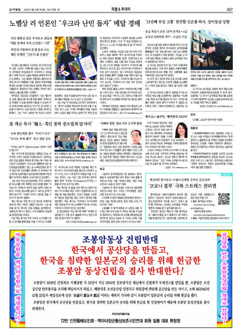 노벨상 러 언론인 “우크라 난민 돕자” 메달 경매