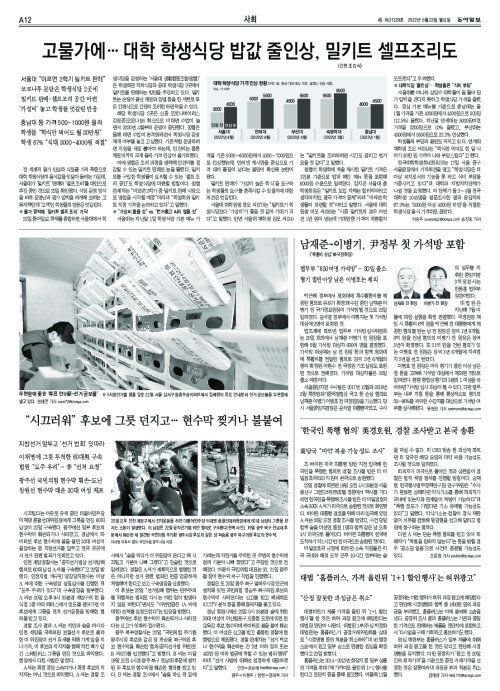 [단독]고물가에… 대학 학생식당 밥값 줄인상, 밀키트 셀프조리도