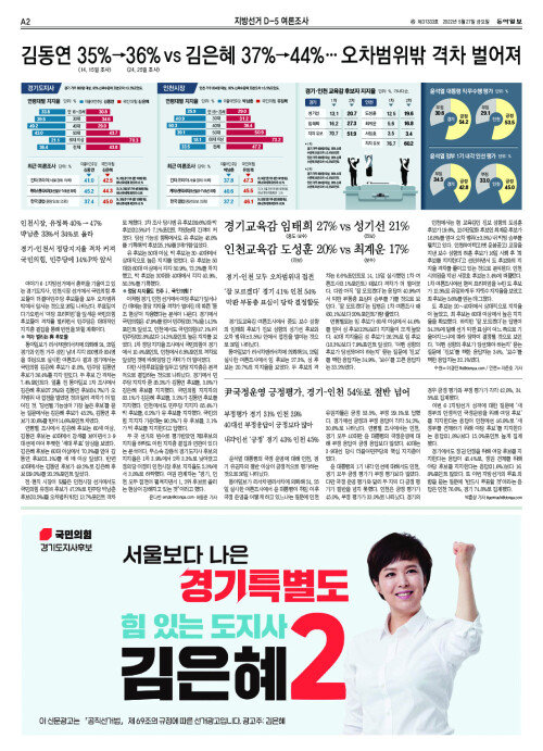 경기지사 김동연 36.4% vs 김은혜 43.8%