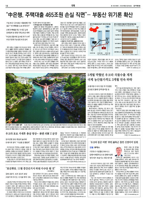 5개월 막혔던 우크라 곡물수출 재개… 국제 농산물가격도 3개월 연속 하락