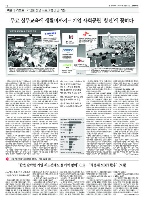 무료 실무교육에 생활비까지… 기업 사회공헌 ‘청년’에 꽂히다