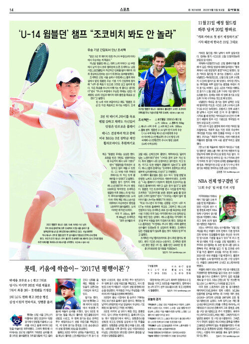 ‘U-14 윔블던’ 챔프 “조코비치 봐도 안 놀라”