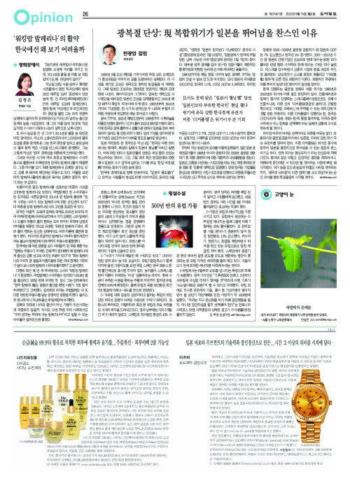 [천광암 칼럼]광복절 단상:現 복합위기가 일본을 뛰어넘을 찬스인 이유