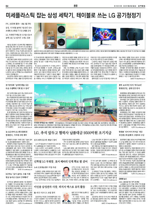 - 미세플라스틱 잡는 삼성 세탁기, 테이블로 쓰는 LG 공기청정기