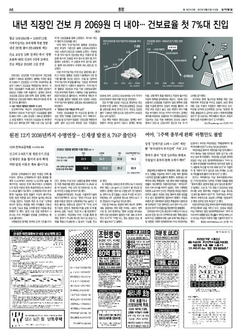 내년 직장인 건보 月 2069원 더 내야… 건보료율 첫 7%대 진입