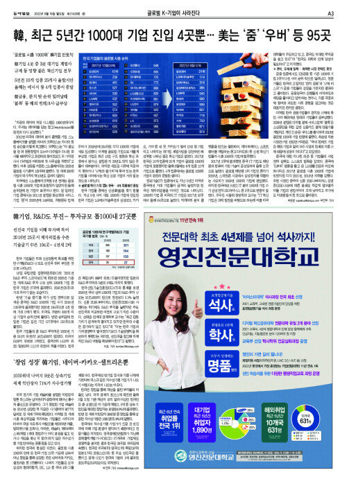 ‘글로벌 시총 1000위’ 韓기업 5년새 반토막… 새로 진입한 신생기업 ‘0’