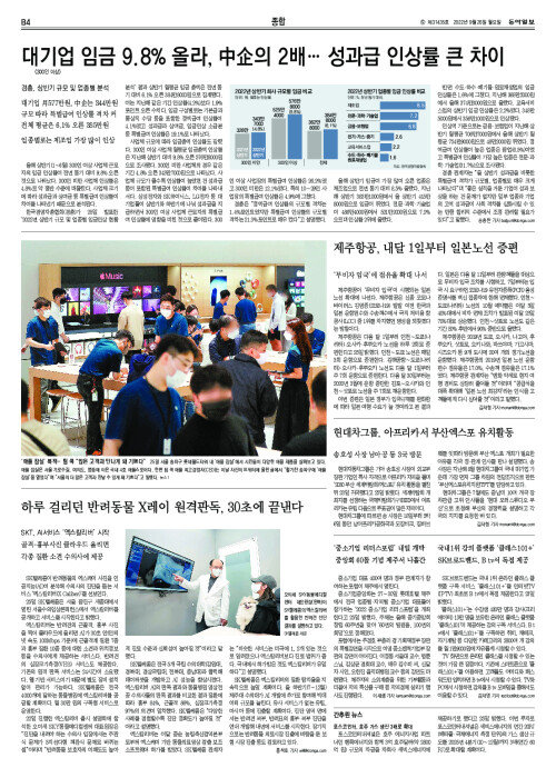 대기업 임금 9.8% 올라, 中企의 2배… 성과급 인상률 큰 차이