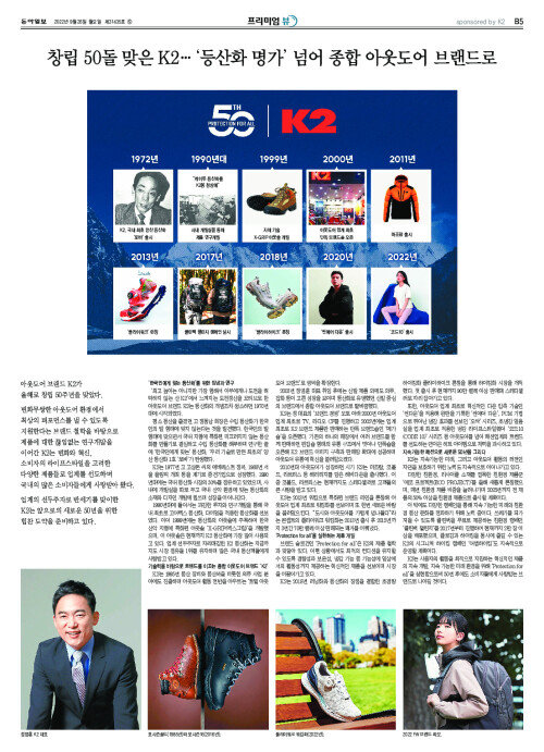 [프리미엄뷰]창립 50돌 맞은 K2… ‘등산화 명가’ 넘어 종합 아웃도어 브랜드로