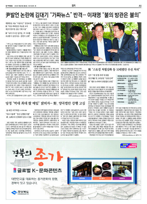 尹발언 논란에 김대기 “가짜뉴스” 반격… 이재명 “불의 방관은 불의”