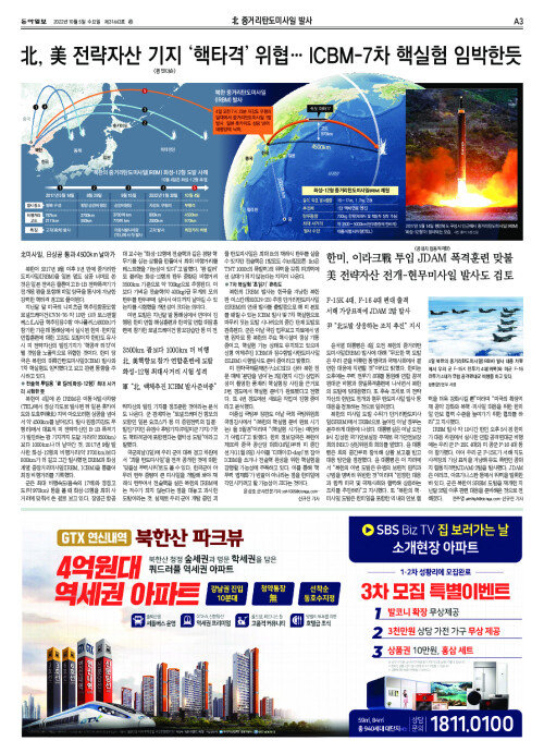 北미사일, 日 가로질러 괌 미군까지 ‘핵 위협’… 한미, 정밀폭격훈련 ‘맞불’