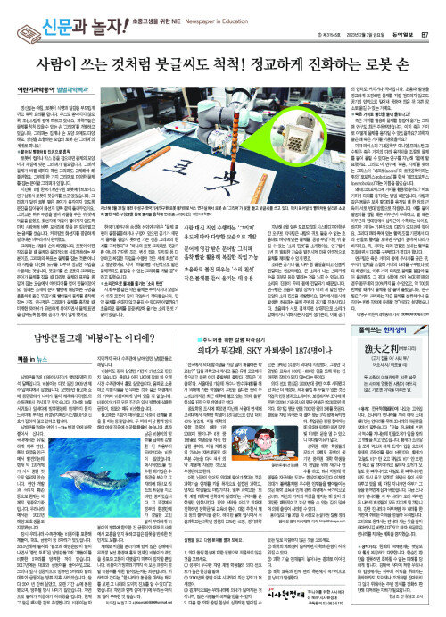 [신문과 놀자!/어린이과학동아 별별과학백과]사람이 쓰는 것처럼 붓글씨도 척척! 정교하게 진화하는 로봇 손