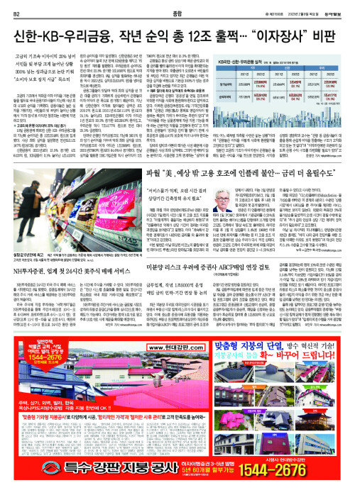 신한-KB-우리금융, 작년 순익 총 12조 훌쩍… “이자장사” 비판