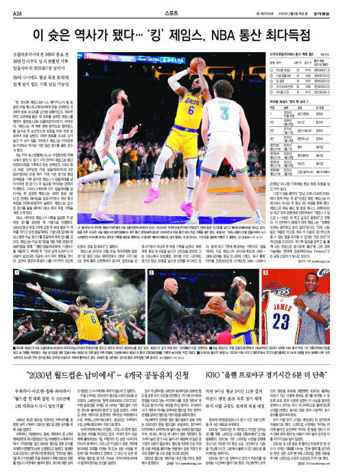 이 슛은 역사가 됐다… ‘킹’ 제임스, NBA 통산 최다득점
