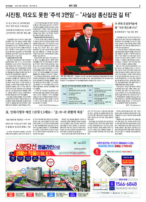 시진핑, 中국가주석 3연임… 2952명 만장일치