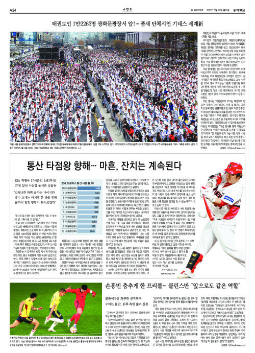 태권도인 1만2263명 광화문광장서 얍!… 품새 단체시연 기네스 세계新