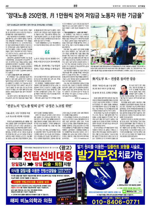 “양대노총 250만명, 月 1만원씩 걷어 저임금 노동자 위한 기금을”