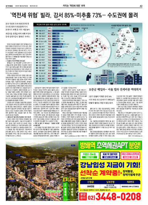 보증금 떼일라… 서울 빌라 전세비중 역대최저