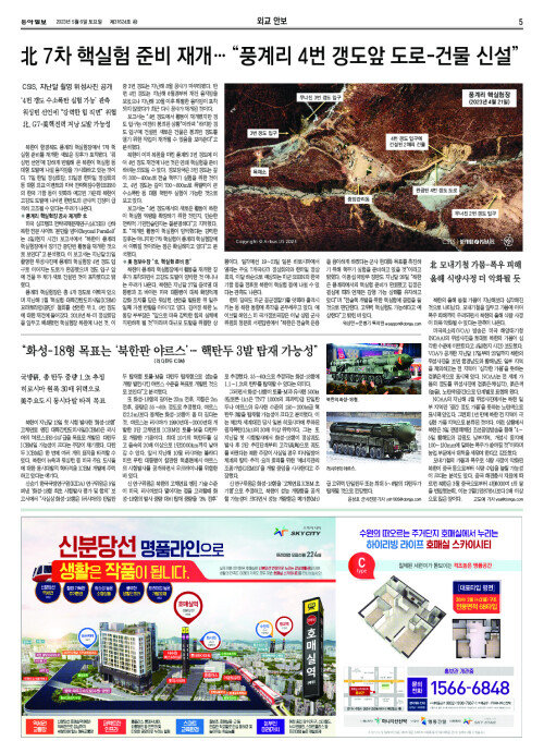 北 7차 핵실험 준비 재개… “풍계리 4번 갱도앞 도로-건물 신설”