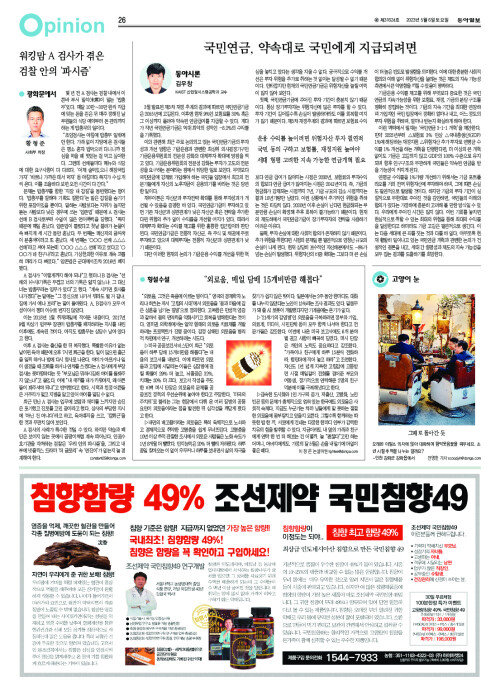 [동아시론/김우창]국민연금, 약속대로 국민에게 지급되려면