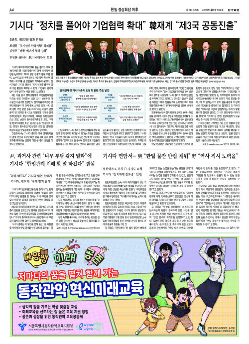기시다 “정치를 풀어야 기업협력 확대” 韓재계 “제3국 공동진출”