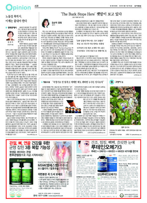 [김순덕 칼럼]‘The Buck Stops Here’ 팻말이 보고 있다