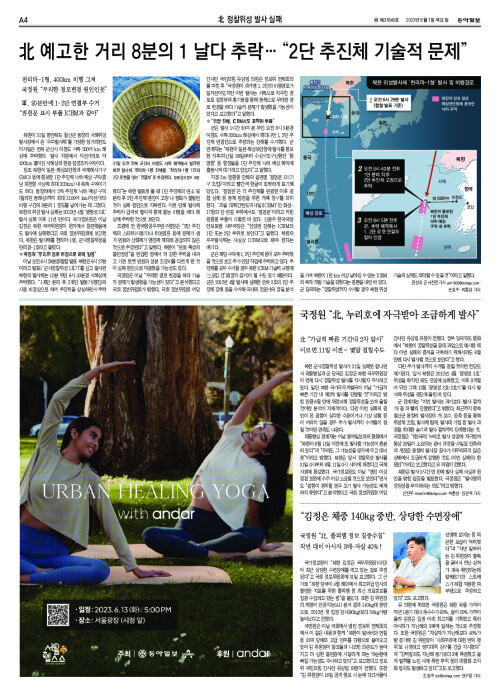 北 예고한 거리 8분의 1 날다 추락… “2단 추진체 기술적 문제”